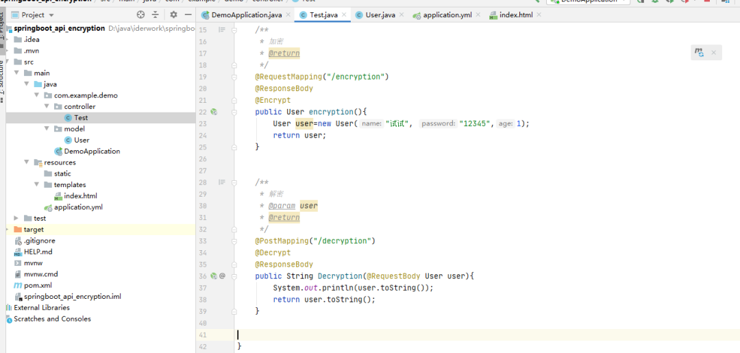 该项目使用RSA加密方式对API接口返回的数据加密,让API数据更加安全。别人无法对提供的数据进行破解。Spring Boot接口加密,可以对返回值、参数值通过注解的方式自动加解密 。
